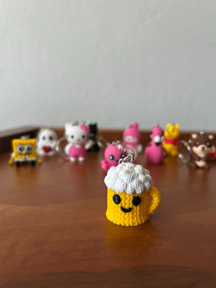 Sarı renkte köpüklü bira bardağı şeklinde, gülen yüzlü renkli anahtarlık figürü. Anahtarlık veya çantalara eğlenceli bir dokunuş katar.