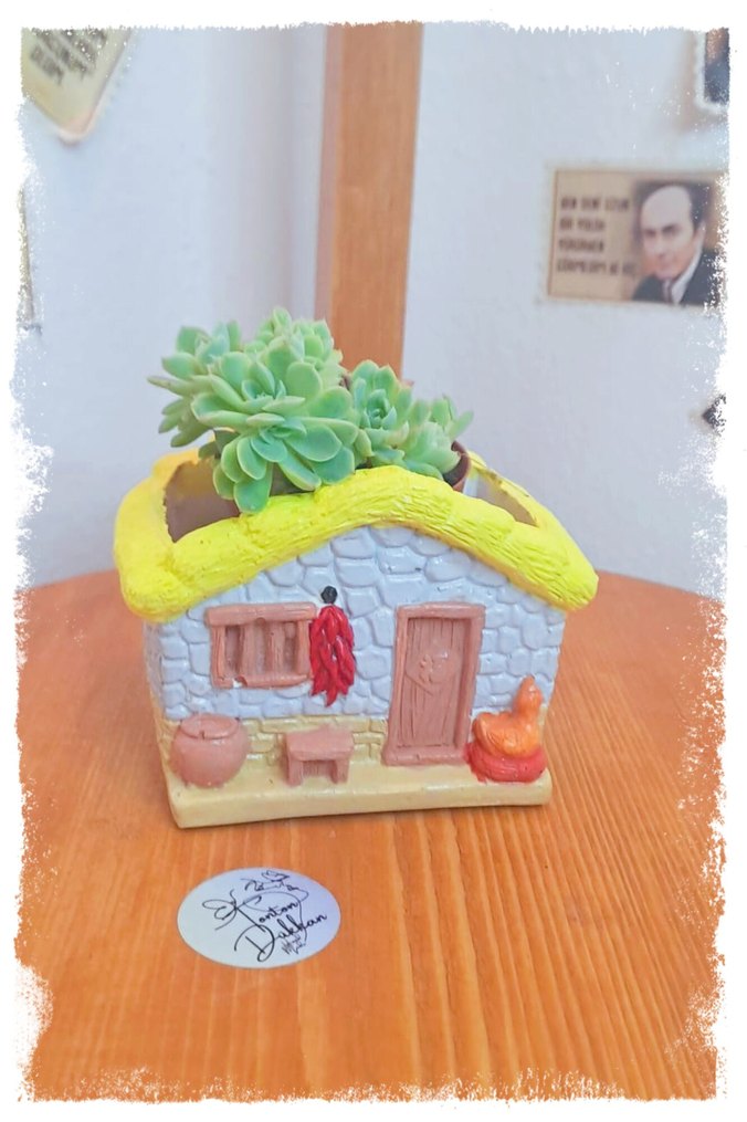 Sarı Köy Evi Şeklinde Sukulent Saksısı ve Mumluk