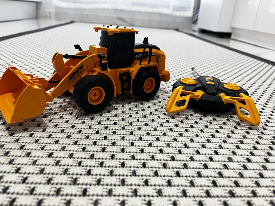 Sarı renkte uzaktan kumandalı oyuncak kamyon, detaylı tasarımı ve büyük tekerlekleriyle oyun keyfi sunar. Kumandasıyla kolayca kontrol edilir.