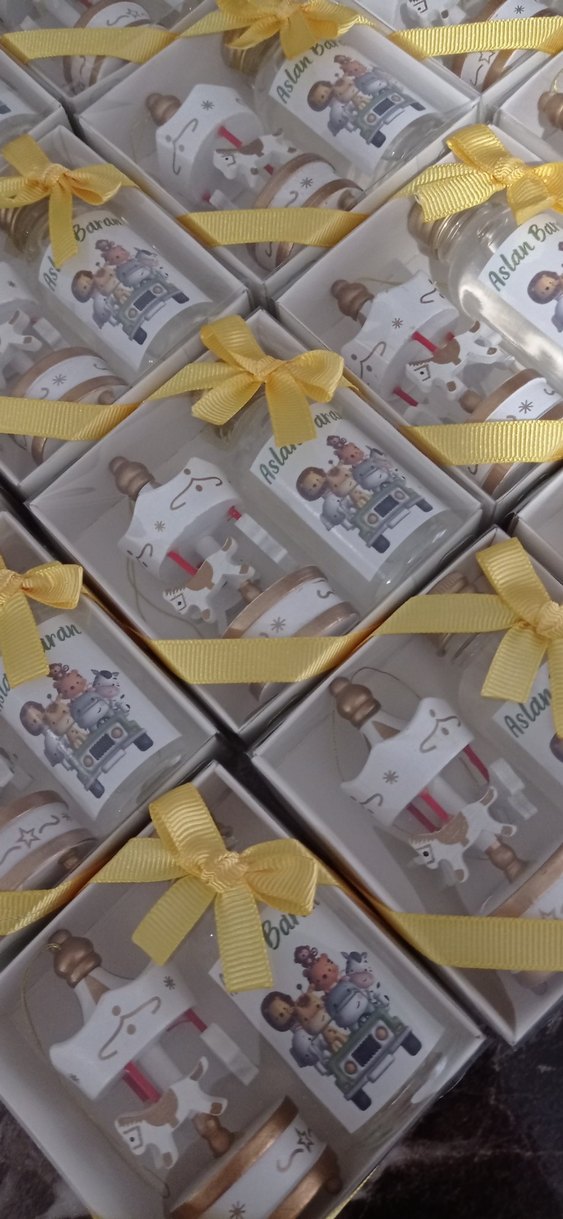 Özel günler için açık sarı temalı dekoratif ürünlerden oluşan, sarı kurdeleli hediye seti .
