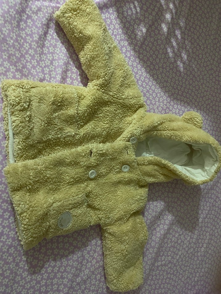 Sarı Kürk Detaylı Kapüşonlu Bebek Tulumu
