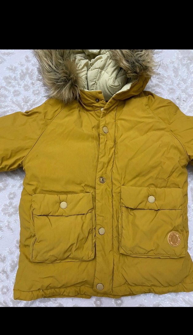 Sarı Kürklü kuş Tüyü Çocuk Mont