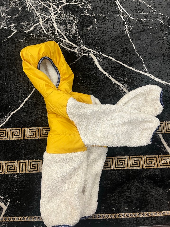 Koyu sarı renkte, kürk detaylı 3 yaş çocuk kıyafeti, ekstra sıcaklık ve konfor sağlar. Önün cepli köpek detayı vardır. Oğlum hiç giymediği için satıyorum. Harika bir parça