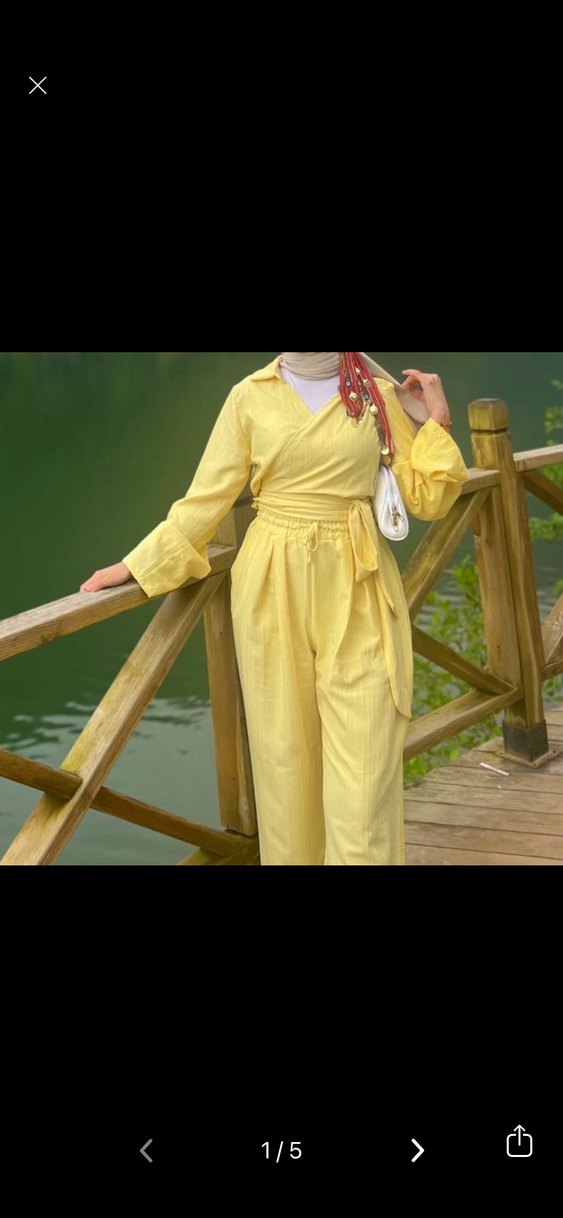 Uzun sarı kadın takımı, kuşaklı bel ve yüksek yakalı uzun kollu tasarıma sahiptir. Yumuşak sentetik kumaştan, hafif batik desenlidir. ( Açıklamayı okuyun =>>>>> Bir defa kullandım . M beden uyumlu S beden de giyebilir . Pantolon geniş model. Fotoğrafın sonunda ufak bir dikiş yeri var ama görünmüyor pantolonun salaş olmasından dolayı. Önden hiçbir şekilde görünmez zaten pantolonun dikiş kısmına yakın. hem tesettür hem açık kesim giyebilir)