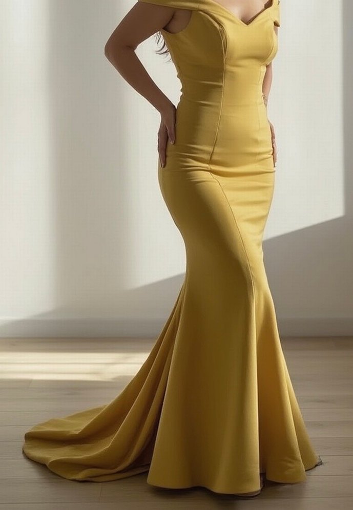 Sarı Kuyruklu Drapeli Uzun Balık Model Abiye Elbise