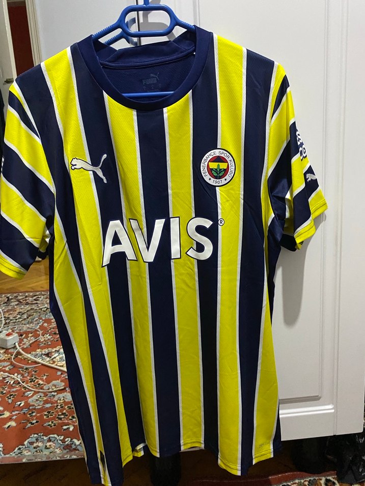 Erkek forması kısa kollu, bisiklet yaka ve vücuda oturan kesimdedir. Sentetik kumaştan üretilmiş, koyu sarı ve lacivert çizgili, 'AVIS' baskılı ve Velcro detaylıdır. Sokak stili ve günlük kullanım için uygundur. ⚽