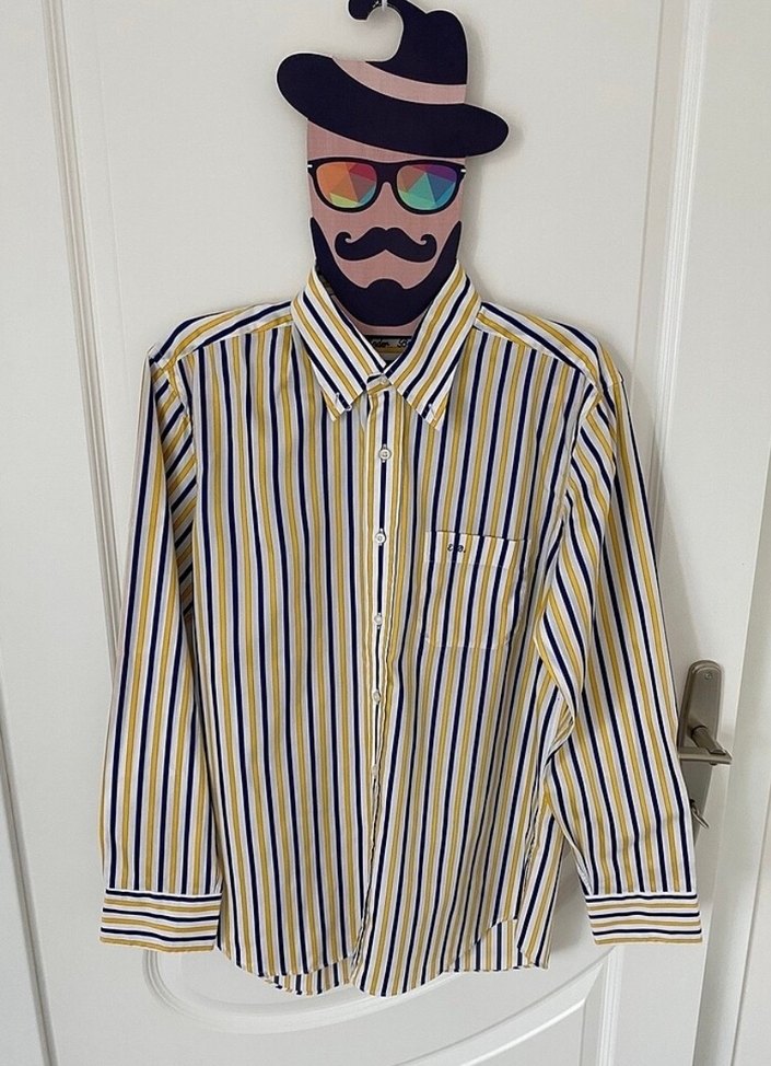 Sarı-lacivert Çizgili Uzun Kollu Erkek Gömlek