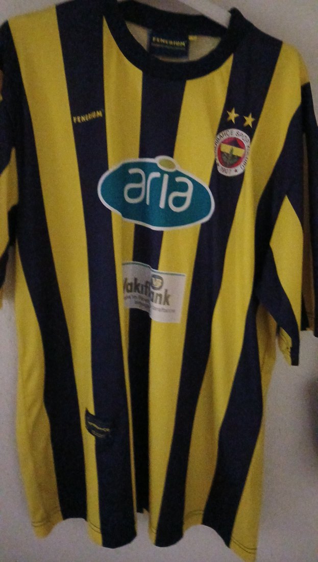 Kısa kollu, yuvarlak yaka ve bol kesim erkek forma. Sarı-lacivert çizgili baskılı, Velcro detaylı, sentetik kumaştan üretilmiştir. Spor ve günlük stil için uygundur. ⚽