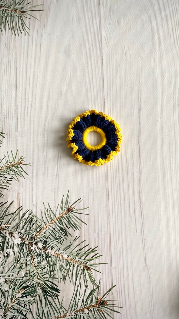 Sarı ve lacivert- siyah beyaz - sarı kırmızı renklerde örülmüş, bohem tarzda renkli ve rahat örgü saç tokası. Adet fiyatıdır