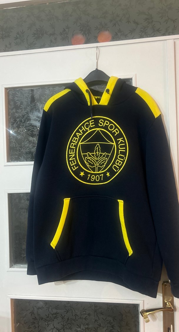 Fenerbahçe spor kulübü baskılı, kapüşonlu ve uzun kollu, yumuşak ve sıcak kumaştan yapılmış, fitted kesim siyah sweatshirt. Sarı detaylar ve cırt cırtlı özellik içerir. Eni. 60 cm Boyu. 72 cm