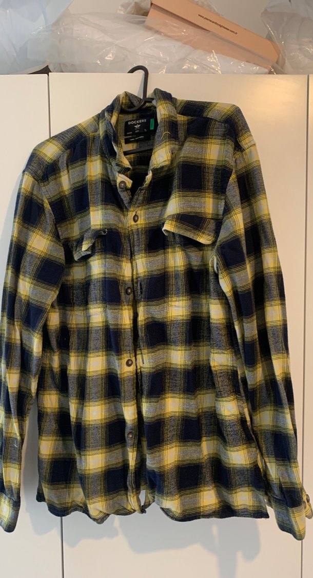 Uzun kollu, düğmeli, yakalı erkek gömleği. Sarı larcivert ekoseli, bol kesim ve yumuşak dokulu kumaştan üretilmiştir. Günlük rahat kullanıma uygundur.