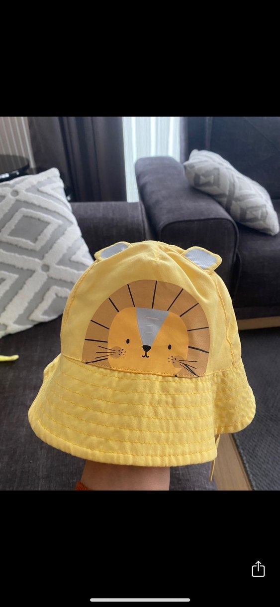 Sarı çocuk şapkası, renkli leopar yüzü baskısı ve küçük kulak detayları ile Velcro ayarlı, genç ve rahat stil için uygun.