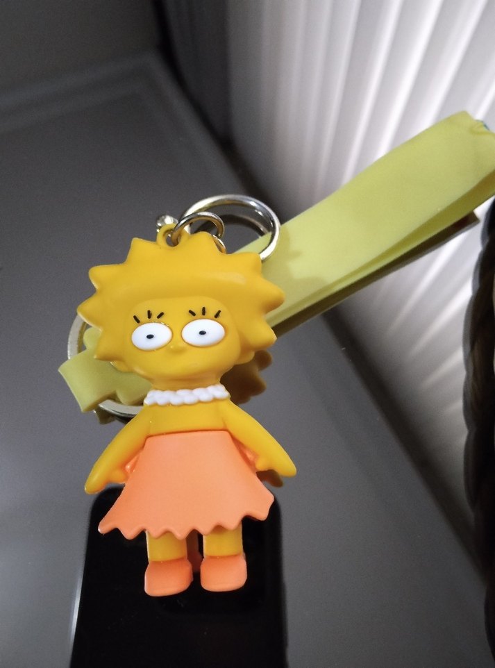 Sarı renkli, tokalı kayışa sahip ve renkli Lisa Simpson figürlü anahtarlık, sokak stili ile minimalist tasarımı bir araya getiriyor. Trend belirleyiciler için ideal.
