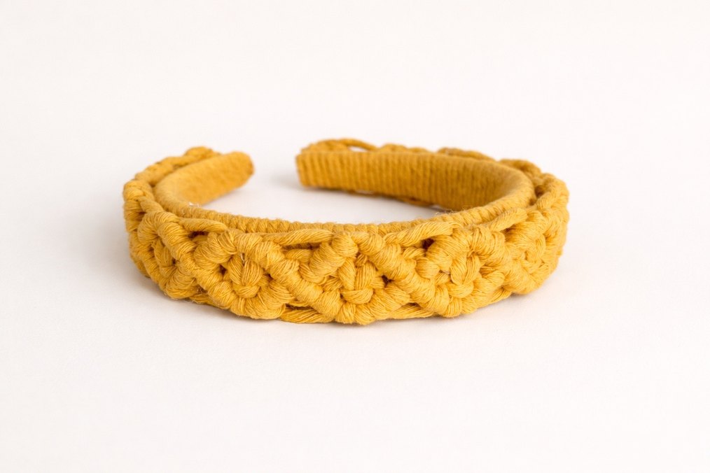 Sarı renkli, örgü detaylı bu saç bandı bohem tarzıyla renkli ve retro bir görünüm sunar. İstenilen renklerde tercih edebilirsiniz don görselde renkler mevcut