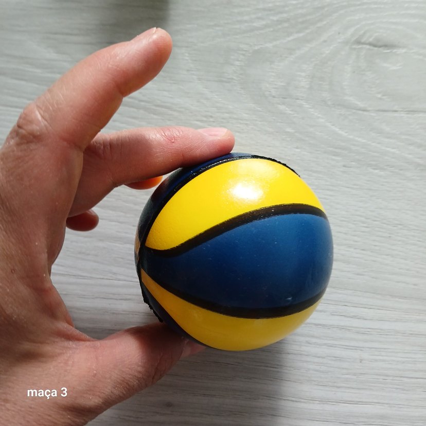 Sarı ve mavi renkli küçük top oyuncak, kolay tutulur ve oyun için uygundur.