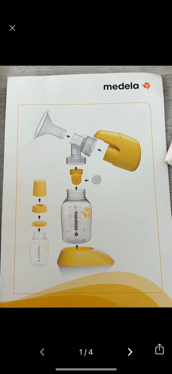 Medela göğüs pompası, kolay temizleme ve montaj için sökülebilen parçalara sahip açık sarı renktedir. Rahat ve etkili süt sağımı sağlar.