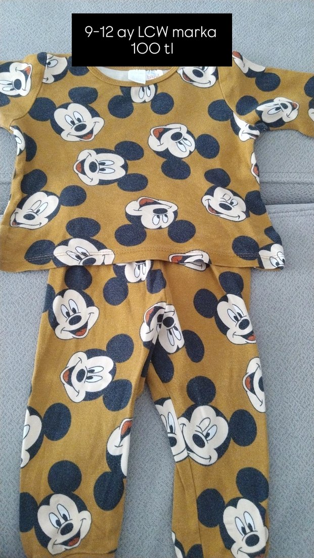 Sarı renk, uzun kollu, Mickey Mouse baskılı, rahat kesim erkek Bebek pijama takımı. ️