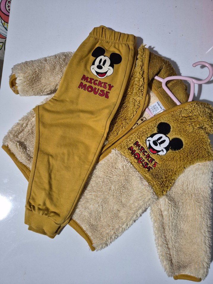 Sarı Mickey Mouse Bebek Takımı Kapüşonlu 9.12 ay