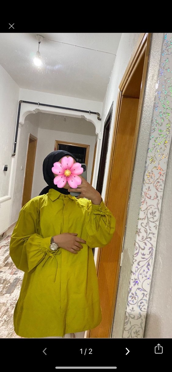 Yüksek yakalı, uzun ve drapeli kollu, çiçek desenli sarı midi boy bol kesim yağmurluk. Sentetik kumaştan, günlük kullanıma uygun. ️