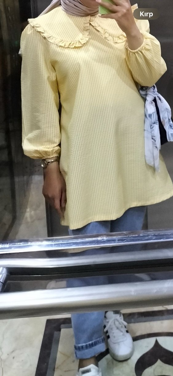 Sarı Midi Boy Yüksek Yakalı Kadın Tunik