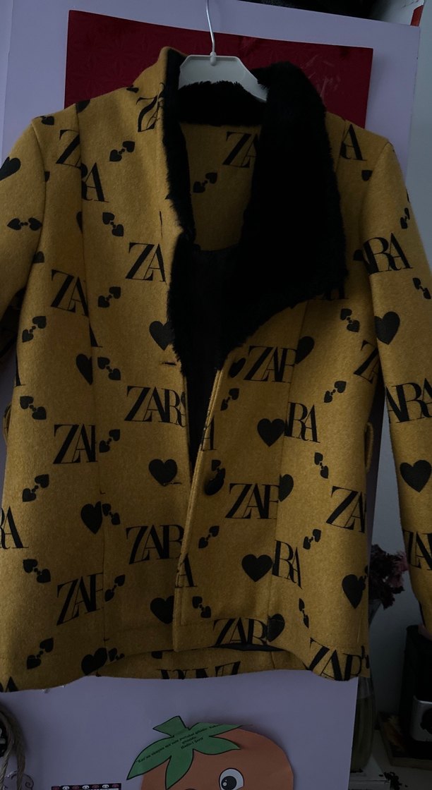 Zara yazılı Sarı midi çocuk palto, yumuşak ve sıcak kumaştan, uzun kollu ve kesik yaka. Kürklü detayları ve desenli yapısıyla günlük kullanıma uygun, regular fit. Nerdeyse hiç giyilmedi kusursuz dur yün keçe karışımı