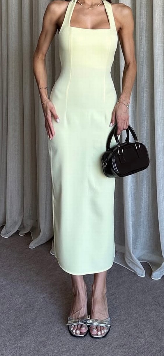 Sarı kumaş midi boy elbise Kiralama var ✅ Özel günlerde , mezuniyet , davetlerde şık bir tercih ⭐️