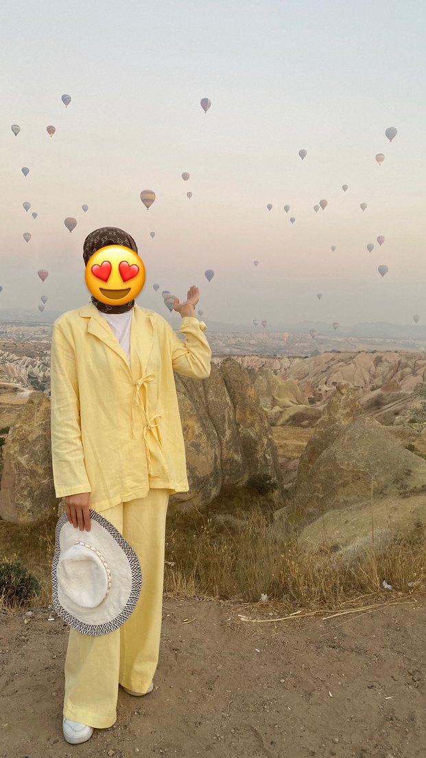 Sarı Midi Kadın Keten Takım