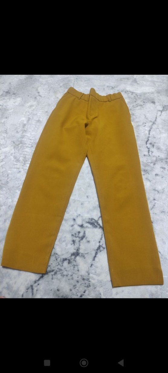 Sarı midi uzunlukta, düz kesim kadın kumaş pantolon. Yumuşak ve rahat kumaştan, günlük kullanıma uygun sade ve şık bir model. Tertemiz yeni gibi yumuşak bir kumaşı var. Hafif esnek kumaş. Beli lastikli, cepli, kemer yeri mevcut ve paçaları hafif yırtmaçlı. Xs-S beden. 30 beden