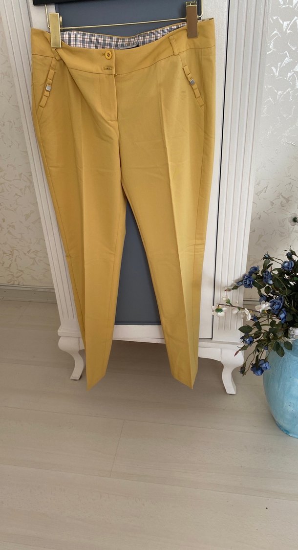 Sarı Midi Kumaş Kadın Pantolon