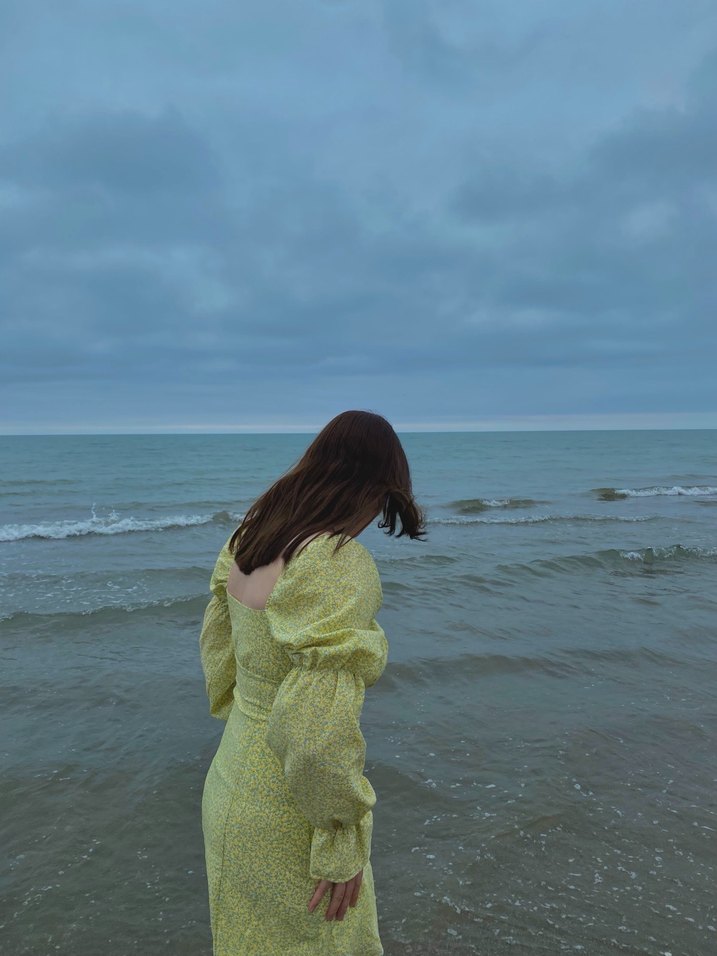 Sarı Midi Uzun Kollu Keten Elbise