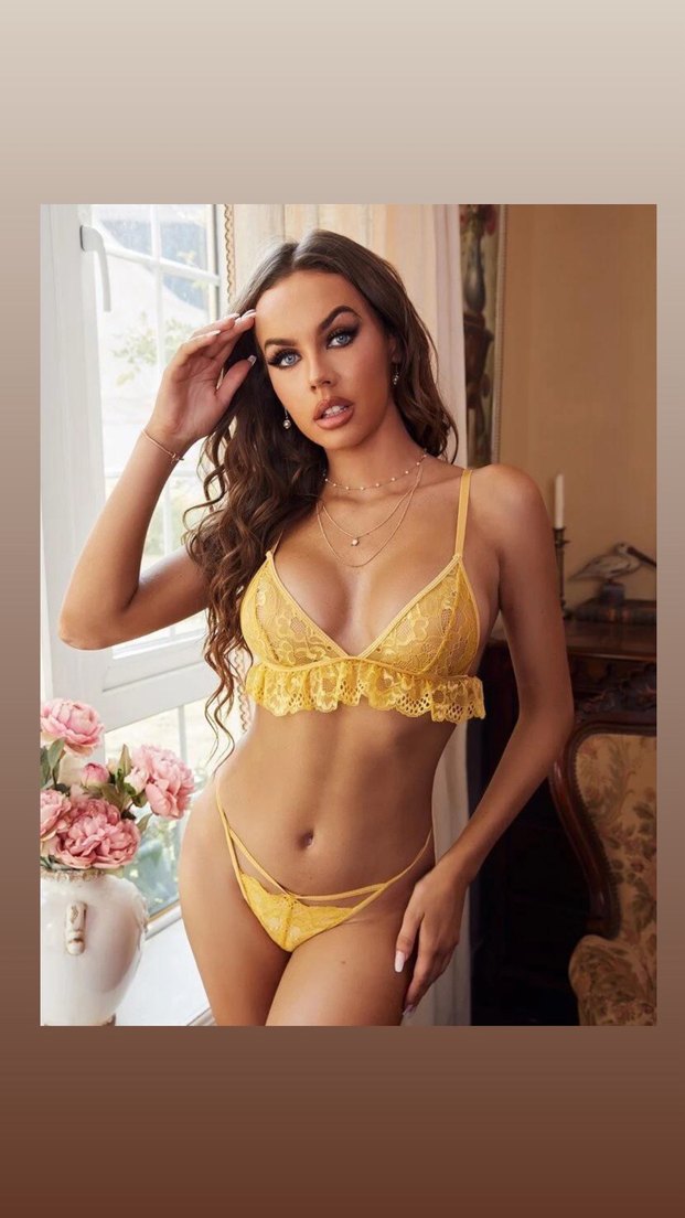 Sarı, mini uzunlukta, ince askılı ve dantel detaylı bohem tarzda bralet takım. Hafif ve desensiz tasarımıyla dikkat çeker.S/M uyumludur