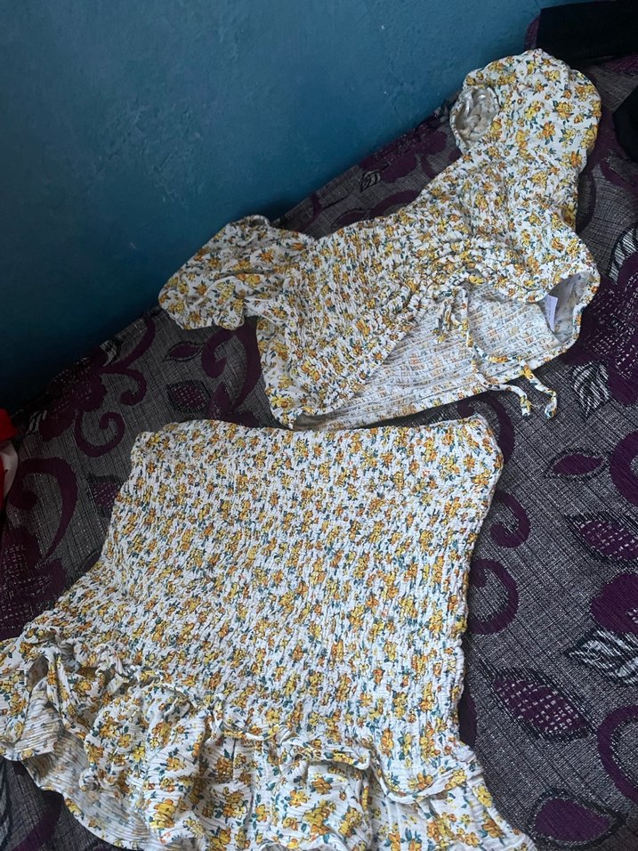 Sarı Mini Bohem Renkli Kadın etekli takım