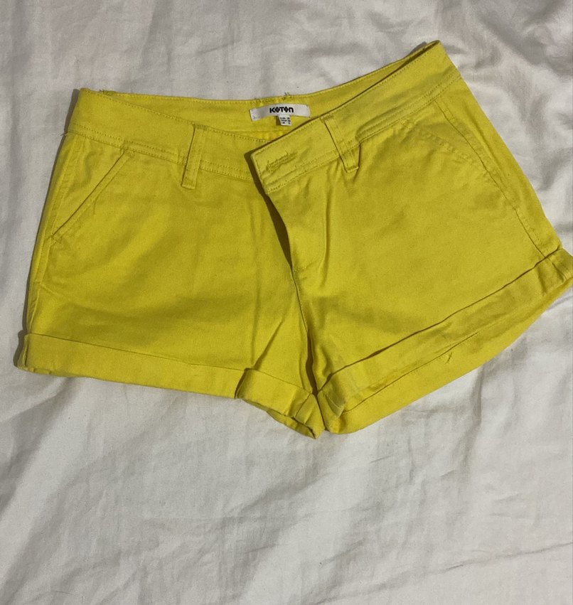 Pamuk kumaştan yapılmış, renkli ve rahat şık sarı mini şortlar, günlük sokak giyimi için uygundur. Düz ve basic tasarıma sahiptir.