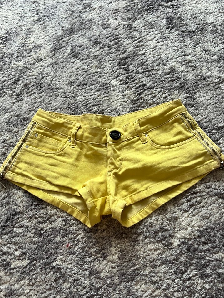 Sarı Mini Kadın Şort Düğmeli Fit Kesim