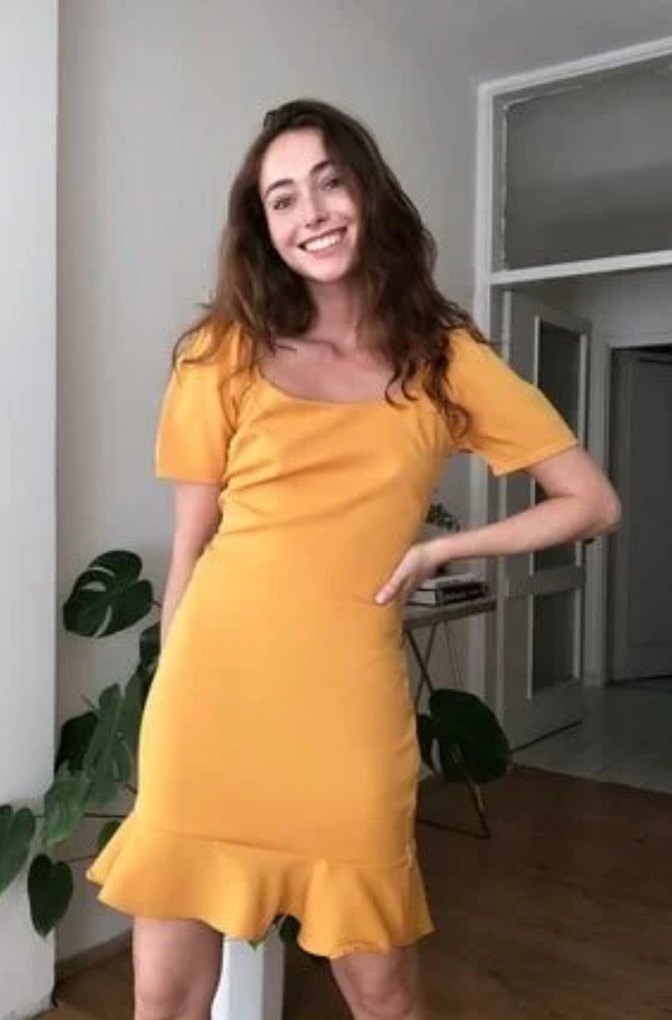 Sarı Mini kare Yaka Kısa Kollu elbise etiketli 36 beden