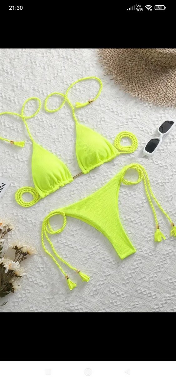 Sarı Mini Püsküllü İpli ithal Bikini