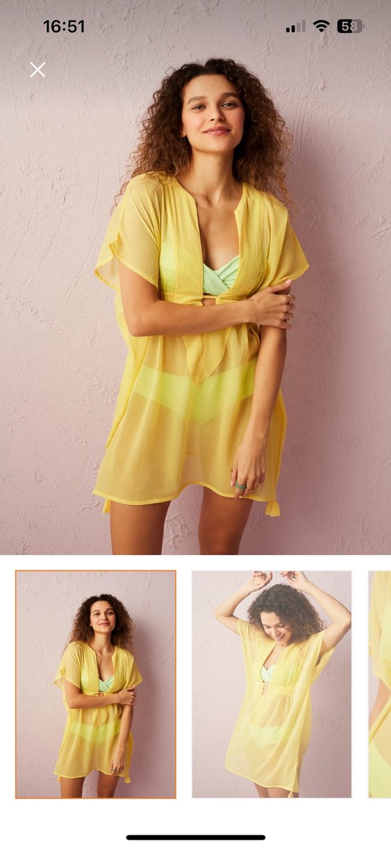 Sarı Mini Transparan Bohem Pareo