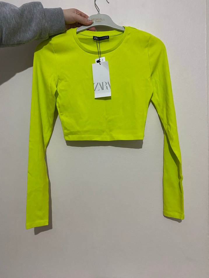 Sarı, uzun kollu, mini kesim ve dar kesim kadın bluz. günlük kullanıma uygun, rahat şık bir tasarım. Crop. M beden ama s giyenlere de olur