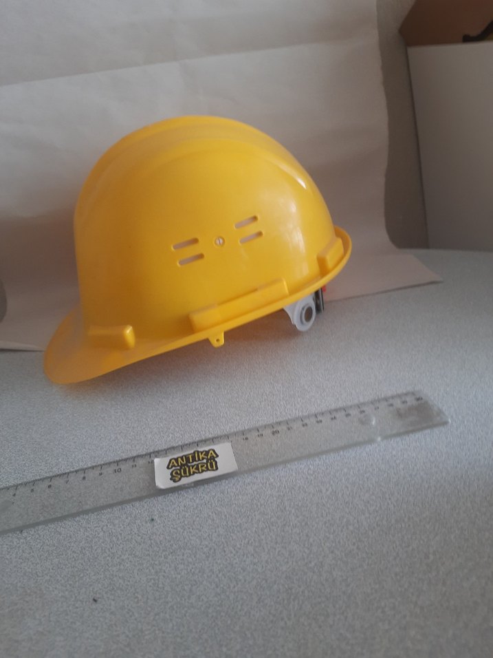 Sarı renkli, plastikten yapılmış minimal tasarımlıis kaskı, sade ve şık görünüm sunar. ️