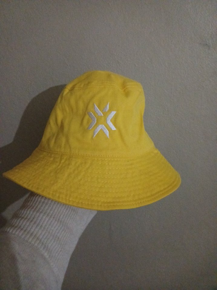 Sarı renkli, parlak sentetik kumaştan yapılmış, minimal ve zahmetsiz şıklık sunan kadın sokak şapkası. Trendy günlük stil için uygundur.