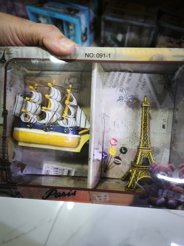 Renkli model set, sarı gemi ve Eyfel Kulesi figürünü içerir. NO:091-1 kodludur.