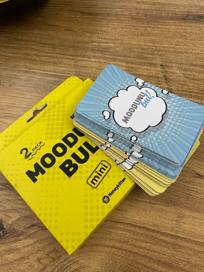Oyun kartı Mood Bingo Mini, sarı renkli ve eğlenceli tasarımlı. İki paket halinde, oyun keyfini artırır.