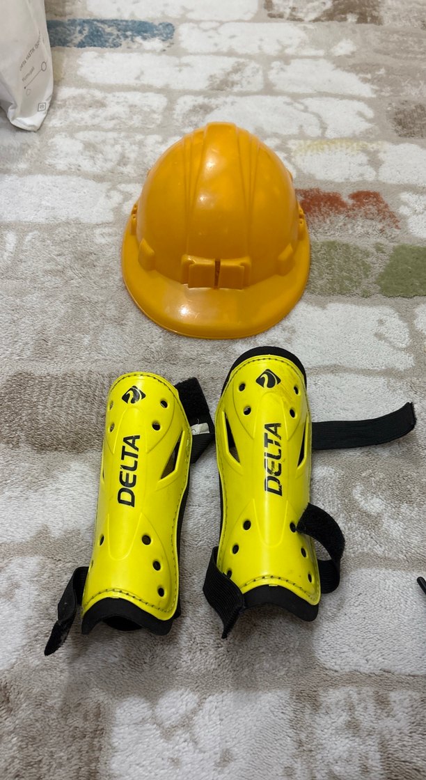 Renkli sarı motosiklet dizlikleri, baskılı desen ve Velcro kayışlara sahip. Plastik malzemeden üretilmiş, biker ve sokak stiline uygun. ️