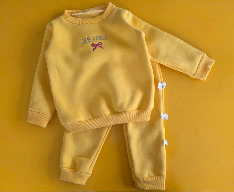 Sarı Nakışlı Bebek Kız Takımı