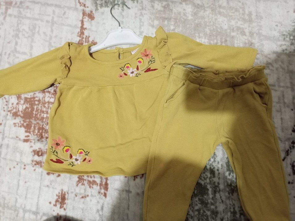 Sarı Nakışlı Bebek Kız Takımı Uzun Kollu