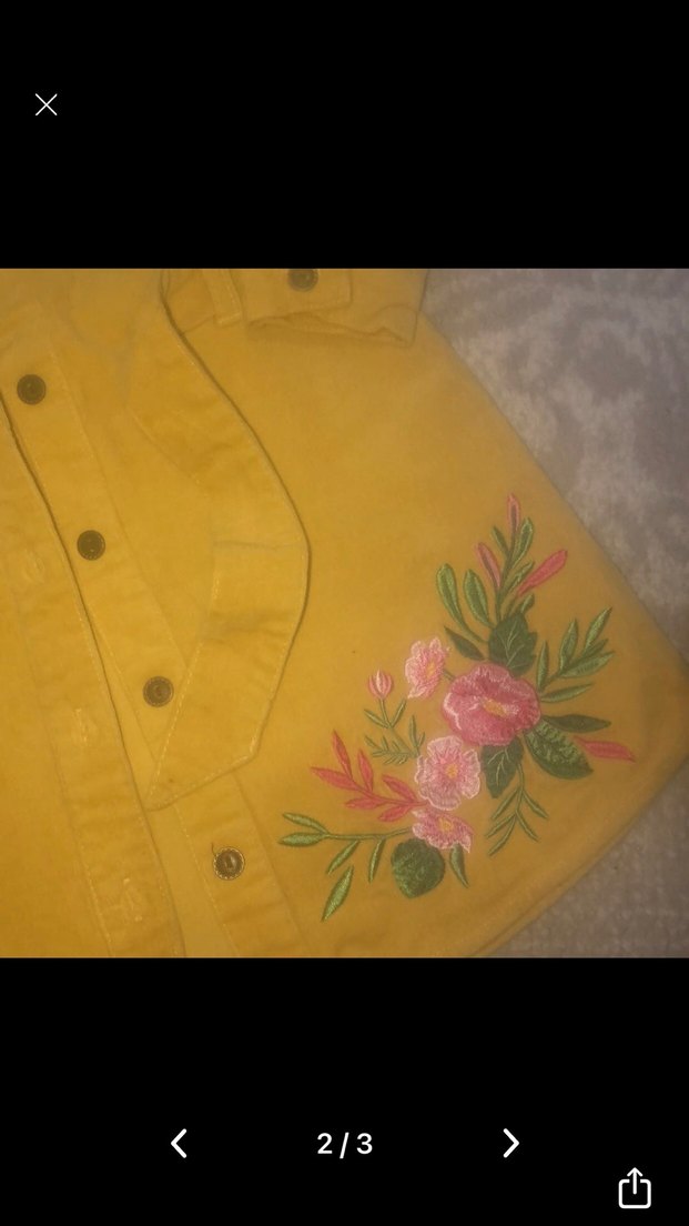 Sarı renkte, nakışlı çiçek desenli, düğmeli, yakalı ve uzun kollu bohem tarzda midi boy kız çocuk elbisr . Rahat ve bol kesim, tekstil kumaştan.