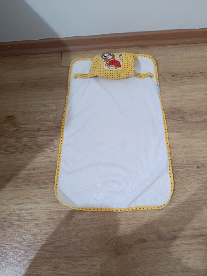 Sarı renkli çocuk alezi, nakışlı desenli ve yumuşak, sıcak dokusuyla konfor sağlar.