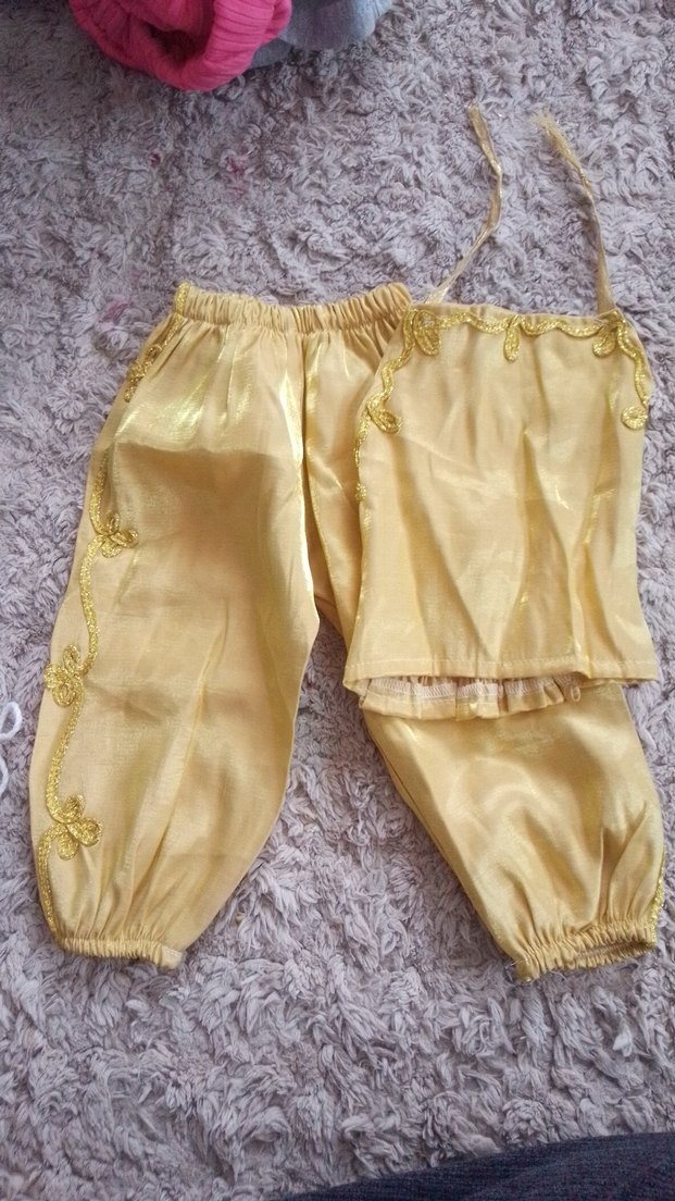 Parlak sarı, ipek gibi yumuşak kumaştan, nakış ve dantel detaylı, bol kesim bohem tarzı kız pantolonu.