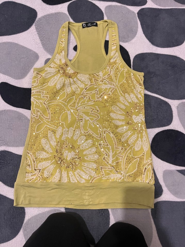 Sarı Nakışlı Dantel Detaylı Pullu Bluz