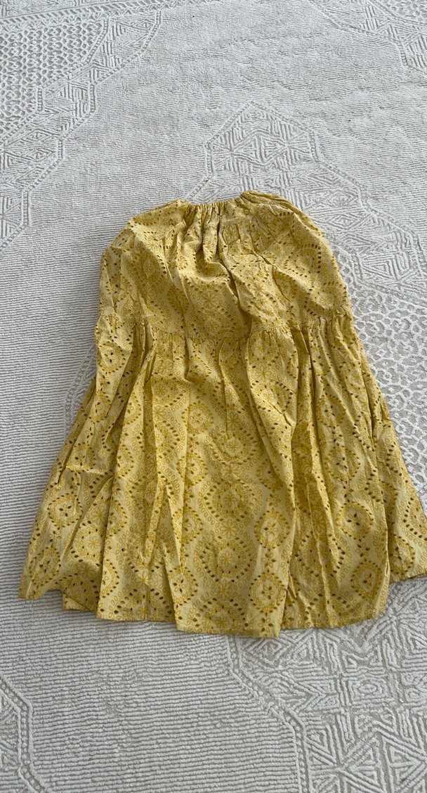 Sarı renkli, nakışlı ve dantelli uzun hamile eteği, bol kesim ve keten kumaşla bohem tarzını yansıtıyor. Beline lastik ekledim arka fermuarı dikilecek